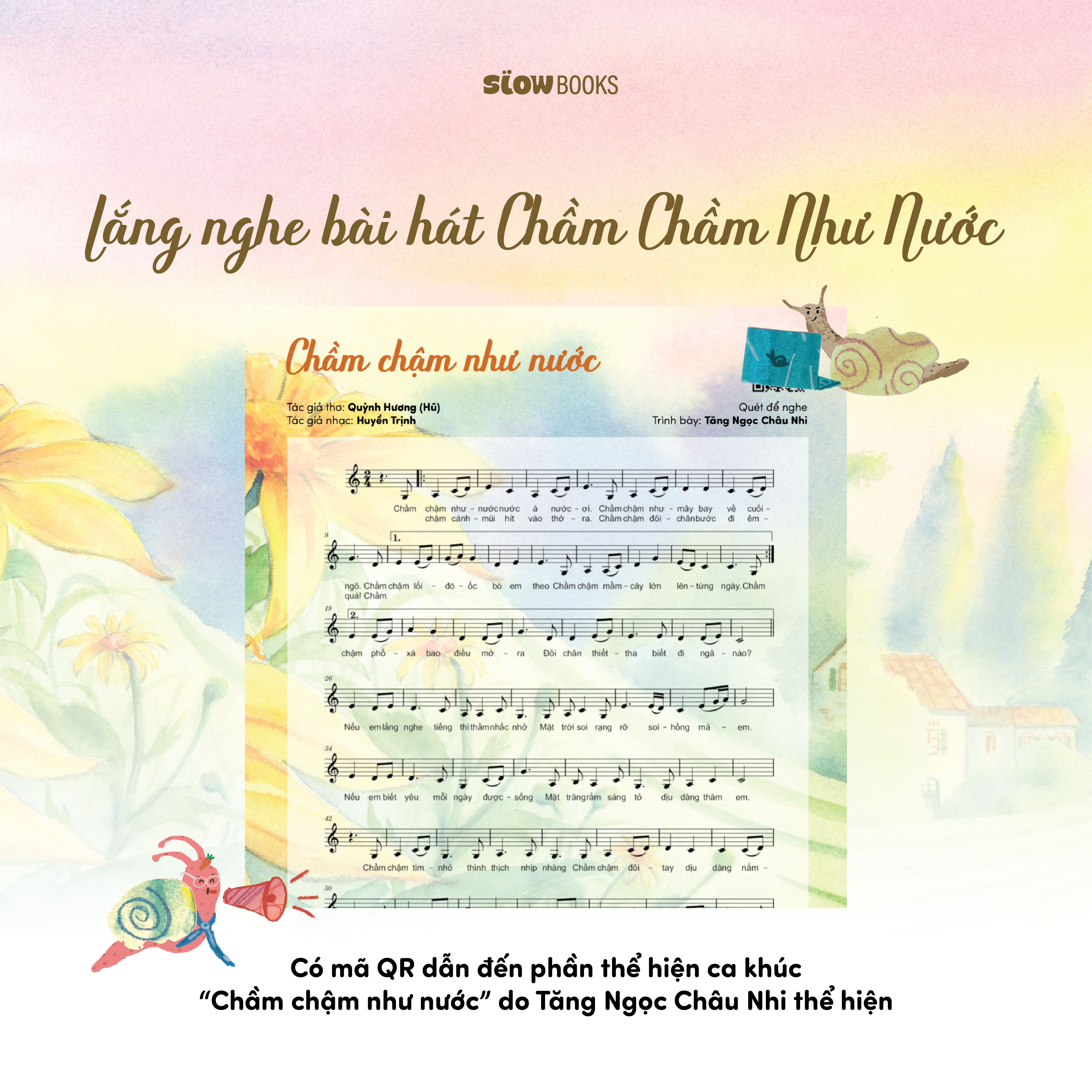 “Slow flow” – “Chầm chậm như nước” là một cuốn sách tranh đẹp đẽ và chậm rãi về hành trình êm dịu của những em bé được lớn lên cùng thiên nhiên. Trong mỗi giai đoạn của cuộc đời, em bé luôn được nhắc nhở rằng hãy chậm rãi để tận hưởng những niềm vui bé nhỏ, ngắm nghía những điều diệu kỳ giản đơn và chậm rãi để đưa ra các quyết định quan trọng của cuộc đời. Cuốn sách tranh này như một món quà mà tất cả những ai yêu trẻ nhỏ có thể dành tặng cho con mình để khuyến khích các em bình tĩnh sống trong một thế giới vận hành nhanh chóng và nhiều thay đổi.