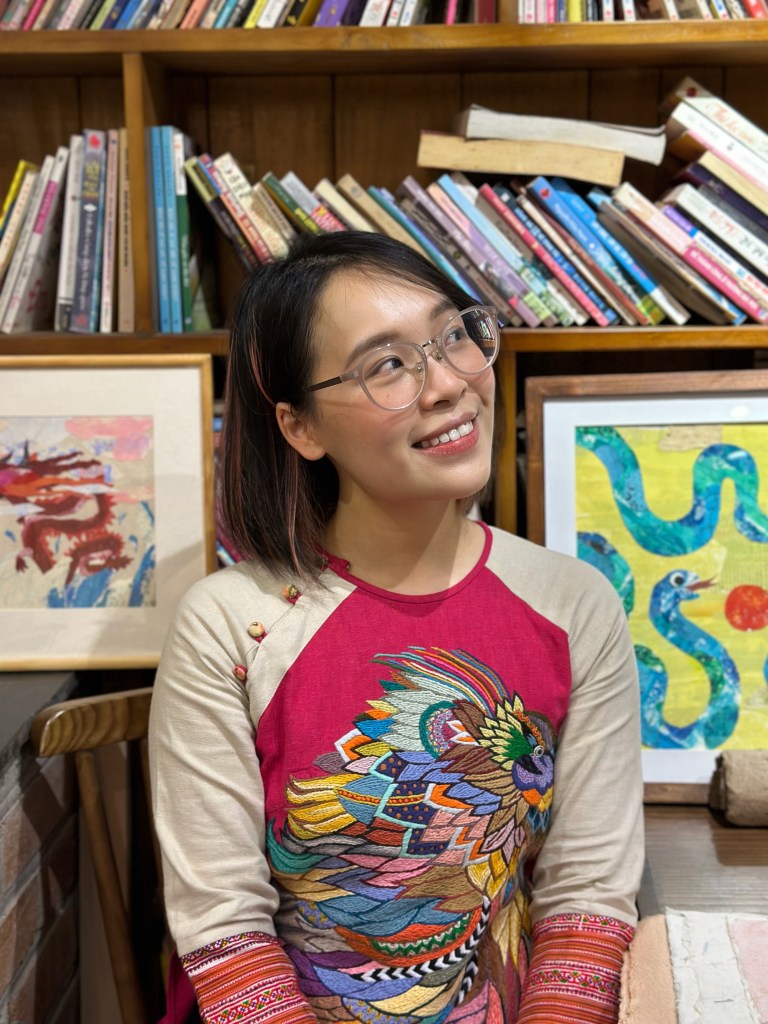 là một họa sĩ minh họa đến từ Việt Nam, nuôi dưỡng ước mơ trở thành tác giả sách tranh—điều cô muốn theo đuổi suốt đời. Với cô, mỗi bức vẽ đều là một câu chuyện, nơi người đọc có thể tìm thấy sự đồng điệu của riêng mình. Bắt đầu từ minh họa kỹ thuật số, sau này cô theo học ngành Thiết kế Đồ chơi và Phương tiện hỗ trợ học tập tại Đại học Mỹ thuật Công nghiệp Việt Nam để mở rộng cách nhìn về trẻ thơ và phương pháp biểu đạt. Hiện nay, cô kết hợp nhiều chất liệu như xé giấy, màu nước, chì màu… để sáng tạo nên những tác phẩm gần gũi và giàu cảm xúc.